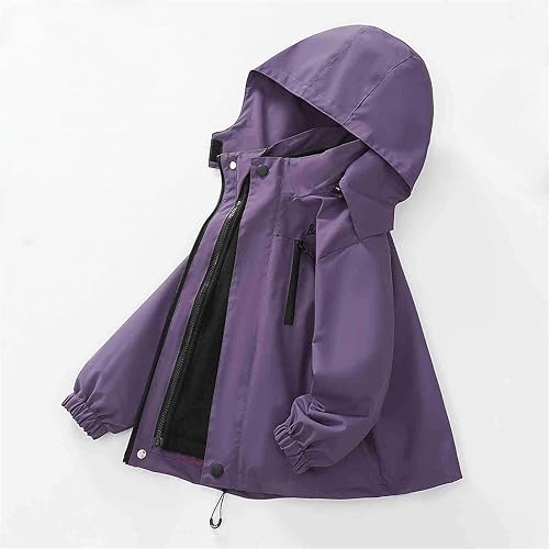 Fall Winter Girls Rain Jacket Windproof Lightweight Raincoat for Boys Comfy Waterproof Zip up Hooded Jacket with Pockets(Purple,3-4T)