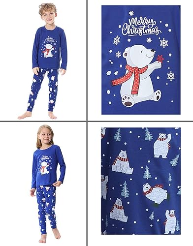 The holiday suit family matching pajamas are equipped with a long-sleeved top and a pair of trousers. These cute Christmas pajamas are printed with "Merry Christmas" graphics and are decorated with Christmas-themed motifs: Christmas white bear, polar bear, elk, snowflake, Christmas tree, Santa Claus, Santa Hat etc. The pattern makes this pajamas more festive, more fun and cute.