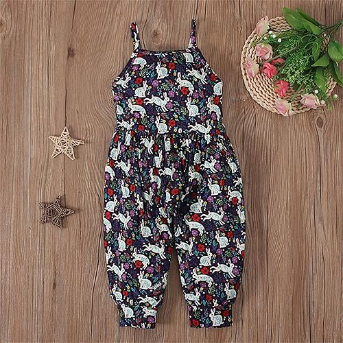 Fashion Clothes for Children Easter Baby Girls Overalls Romper Outfit Sleeveless Halter Rabbit (Blue, 12-18 Months)