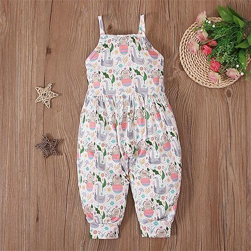 Fashion Clothes for Children Easter Baby Girls Overalls Romper Outfit Sleeveless Halter Rabbit Print (WH2, 3-4 Years)