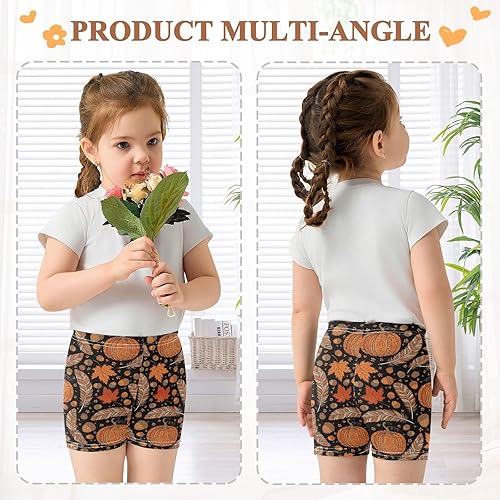 Feather Autumn Black Girls Bike Shorts Toddler Soft Cotton Cartwheel Under Dress Dance Shorts(Multi-feather Autumn Black,10 Years)