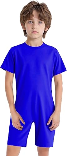 FEESHOW 3 Pcs Children's Special Needs Adaptive Clothing Easy Dressing Anti-Strip Romper Short Sleeve Zip Back Jumpsuit Royal Blue 4 Years