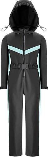FEESHOW Girls One Piece Ski Suit Hooded Snowsuit Windproof Waterproof Overalls Warm Winter Snowboard Ski Suit Black 12 Years