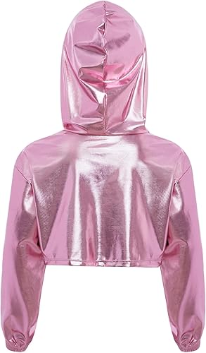 The cropped hooded style is fashionable and youthful, allowing for easy movement during dance routines and adding a modern flair