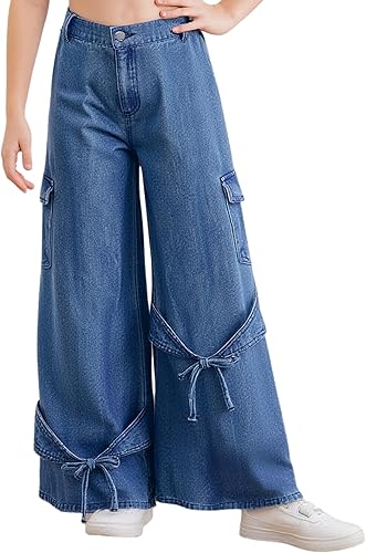 The bowknots add a touch of cuteness, making the jeans stand out in a trendy and fashionable way