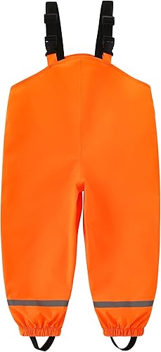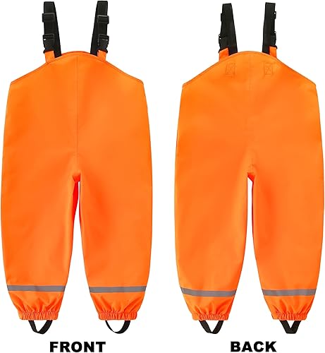 Easy to wear: Featuring an elastic shoulder straps, our kids' rainpants are easy to put on and take off, making dressing time hassle-free.