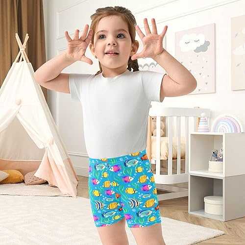 Fish Seaweed Blue Girls Bike Shorts Toddler Soft Cotton Active Biker Shorts(Multi-fish Seaweed Blue,10 Years)