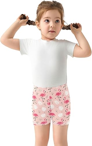 Flamingo Palm Leaf White Girls Bike Shorts Toddler Soft Cotton Under Dress Cartwheel Shorts(Multi-flamingo Palm Leaf White,6 Years)