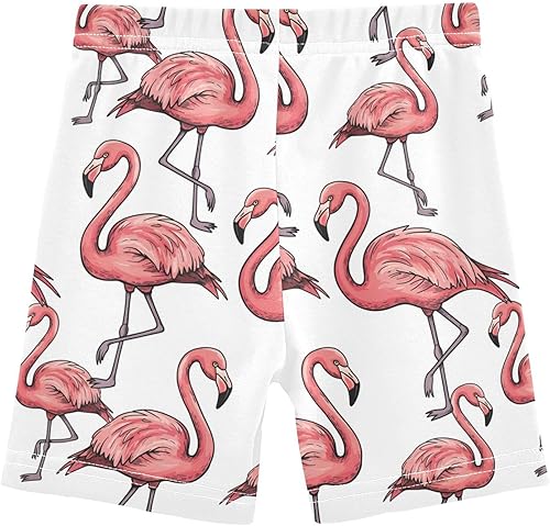 Flamingo Pink White Girls Bike Shorts Toddler Soft Cotton Active Under Dress Shorts(Multi-flamingo Pink White,10 Years)