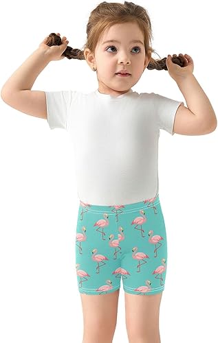 Flamingo Teal Girls Bike Shorts Toddler Soft Cotton Under Dress Cartwheel Shorts(Multi-flamingo Teal,10 Years)