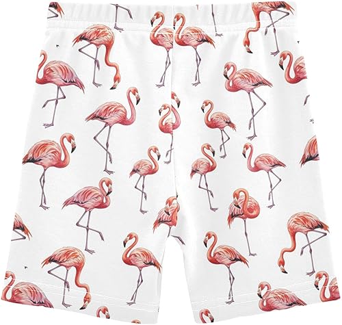 Flamingo White Girls Bike Shorts Toddler Soft Cotton Active Under Dress Shorts(Multi-flamingo White,6 Years)