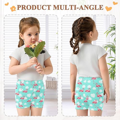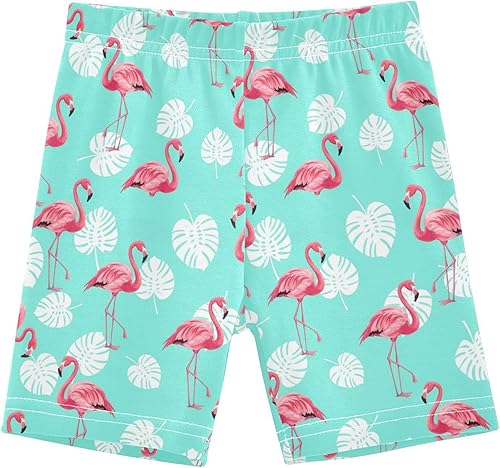 Flamingo White Leaves Girls Bike Shorts Toddler Soft Cotton Under Dress Cartwheel Shorts(Multi-flamingo White Leaves,6 Years)