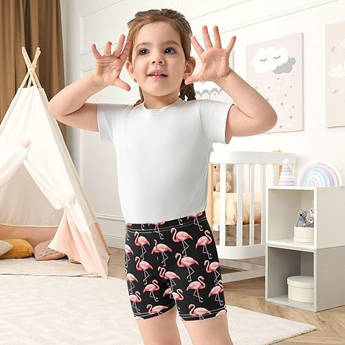 Flamingos Black Girls Bike Shorts Toddler Soft Cotton Under Dress Dance Shorts(Multi-flamingos Black,10 Years)