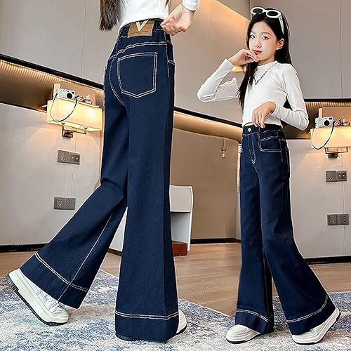 Material: High waisted jeans for girl made of denim style cotton fabric, breathable and closed to skin, design to long lasting, so you can wear them all year round. The wide-leg silhouette brings a contemporary touch to classic denim, giving your little one a chic and stylish appearance that suits any occasion