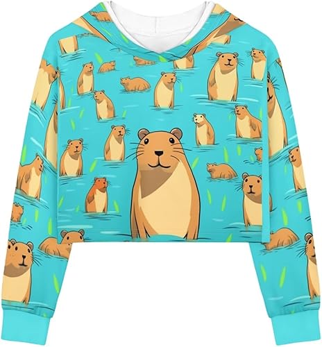【Crop Hoodies for Teen Girls】Kids long sleeves pullover Sweatshirt, hoodie in back,round neck, trimmed neck line. Drop shoulder sleeve design, casual loose fit, casual and comfortable. A large number of fashion print options to meet different matching needs, to accompany the child through a good childhood.