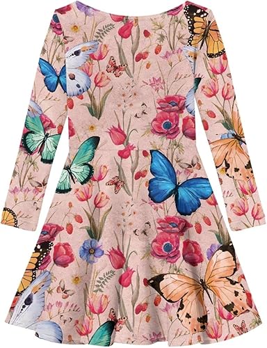 【Thoughtful Design】Long sleeve, round neck, regular fit pullover dress with colorful fashion print makes your girl more elegant, charming and beautiful. It is the best choice for your lovely girl to wear in spring, early summer, fall and winter.