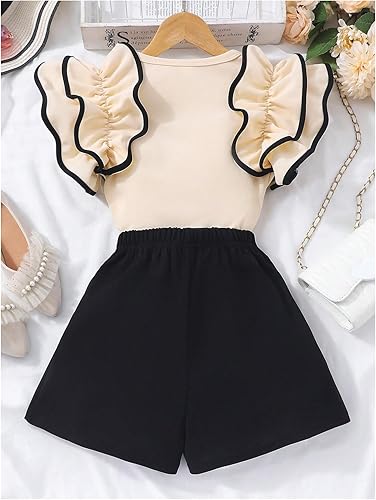 Design: Contrast binding, ruffle trim sleeve, tee shirts, summer shorts