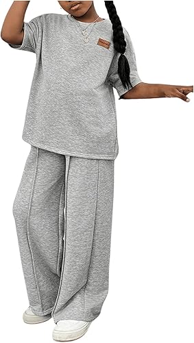 Feature: Letter patched, short sleeve, crew neck, sweatshirts top, straight leg, sweatpants, kids two piece clothines set