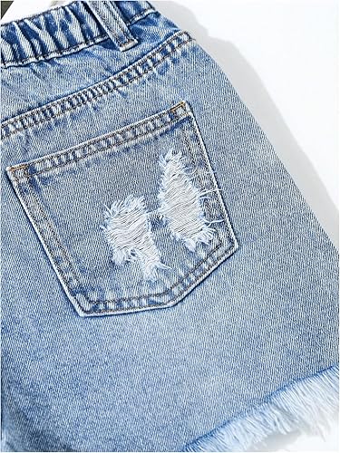 Design: Asymmetrical waist, distressed ripped, raw hem, denim shorts