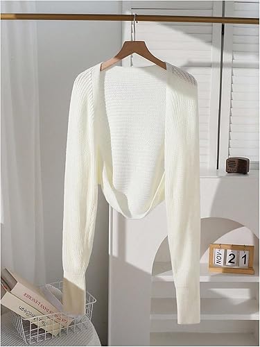 Features: Open front, drop shoulder, asymmetrical, long sleeve, knitted, solid, cardigan sweater