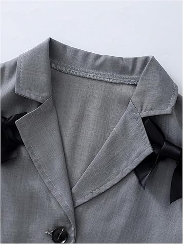 Feature: Bowknot front, long sleeve, button front, blazer jacket, pleated hem, skirts set, 2 piece elegant outfit