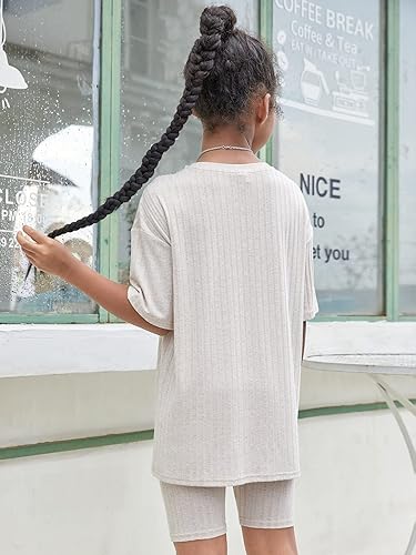 【Feature】: Rib knit, short sleeve, round neck, tee shirt, biker shorts set, two piece outfit