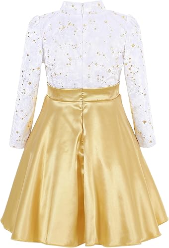 Sparkle Velvet Long Sleeves: The dress features long sleeves made from soft sparkle velvet, boasts a delightful pattern of gilded stars that adds a touch of magic and charm, making your little girl feel like a princess , and it provide warmth and a glamorous touch. It adds an elegant contrast to the overall design