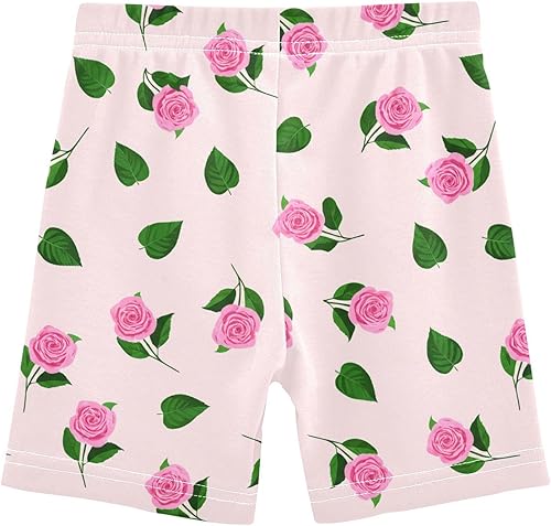 Floral Flower Pink Girls Bike Shorts Toddler Soft Cotton Under Dress Dance Shorts(Multi-floral Flower Pink,6 Years)
