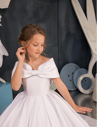 Features:This elegant satin pageant dresses for girls features off-shoulder,bow-knot, A-line, floor length complements the look, ensuring she stands out at any accation, satin bow knot formal guest evening dress for girls