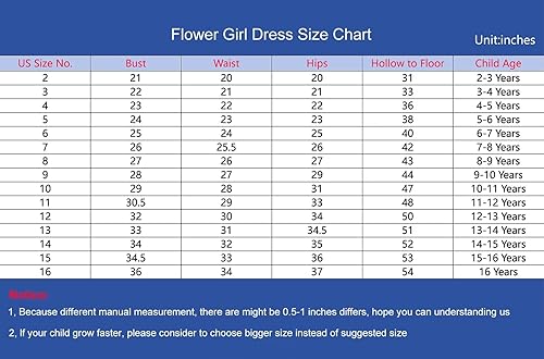 Size Select: Flower girl dresses design for kids girl aged from 2-16; please refer to our size chart carefully before ordering, and figure out fit size to create a truly enchanting appearance, making your girl looks like an adorable princess