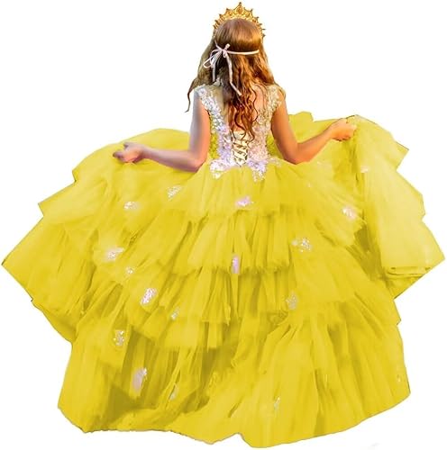 Features: Tulle girls' dress, Beaded Girls Pageant Dress, Cute Flower Girl Dress, A-line First Communion Dress, Floor length, Lace Appliques, With Ruffles, Full-length tulle, Multi-layered flower girls ball gown, cute tiered tulle kids ball gown, lace up closure, tiered, lace, pearly, sequin, tulle, a-line