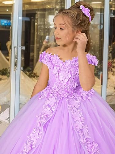 Exquisite Design: Flower Girl Dresses for Wedding, made of 3D Floral Appliques and Soft Tulle, A Line First Communion Baptism Dress, Graceful Sleeveless, Floor Length, Junior Bridesmaid Dress. Perfect for Toddler girls/ little girls/teen girls/ junior girls.