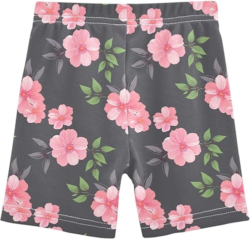Flower Gray Girls Bike Shorts Toddler Soft Cotton Active Biker Shorts(Multi-flower Gray,5T)