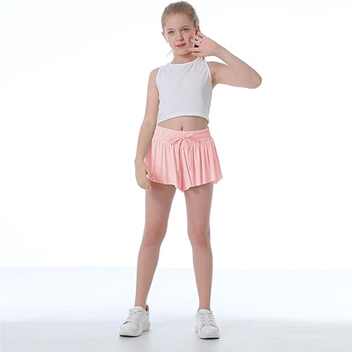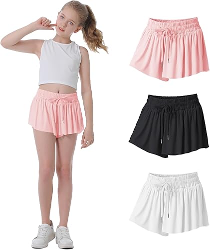 Stretch Waistband for Ultimate Comfort: Our butterfly shorts for girls are equipped with an elastic waistband featuring a convenient drawstring. This thoughtful design ensures a customizable and secure fit, preventing any slipping during physical activities. The flowy pleated legs create a charming skirt-like effect, perfect skirt skorts as girls activewear, preppy shorts for girls, girls athletic shorts, girls athletic skirts, cute flowy shorts for teen girls.