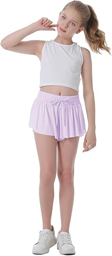 Built-in Liner with Inside Pocket: These flowy athletic shorts for girls are ingeniously designed with a double layer for maximum functionality and style. The outer layer of this preppy shorts features a flowing skirt, adding a touch of sporting fashion, while the inner layer of this girls butterfly shorts boasts a built-in tight-fitting short to provide privacy and security during exercise. The side slits and built-in elastic spandex underneath offer unparalleled freedom of movement.