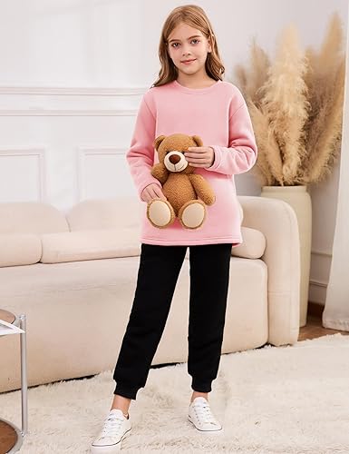 Sherpa Fleece Lined: Kids' crewneck sweatshirts are made from premium comfortable sherpa fabric. The outer layer is soft yet durable, while the inner lining, including long sleeves features plush, cozy faux fur that's skin friendly and non-irritating, protecting children's delicate skin. The high-density fleece lining provides lightweight warmth that effectively retains heat without restricting movement, keeping kids comfortably warm and carefree during cold weather play