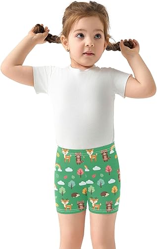 Forest Deer Green Girls Bike Shorts Toddler Soft Cotton Active Biker Shorts(Multi-forest Deer Green,6 Years)