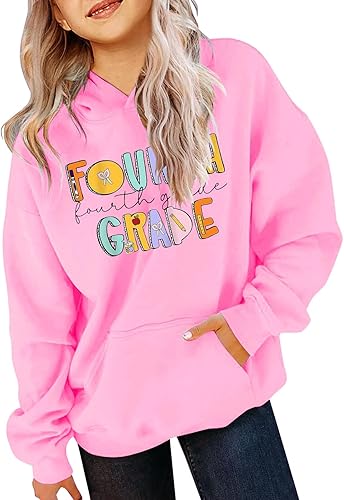FOURTH GRADE Cute Hoodies Back to School Clothes for Teen Girls Oversized Pullover First Day of School Shirt Pullover(White,6-7 Years)