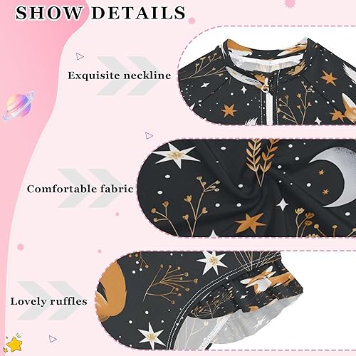 ⭐Swimsuit Design: Long sleeve, one-piece style swimsuit for baby girl, crew neck, front zipper, lovely ruffles, cartoon pattern custom in the front and back for a cute look.