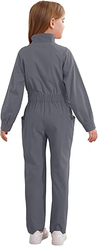 Girls Boys Casual Jumpsuit :Girl's stand collar long sleeve coverall with zipper closure in the front, easy to put on or take off