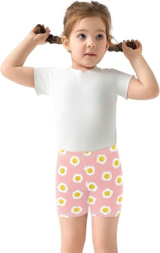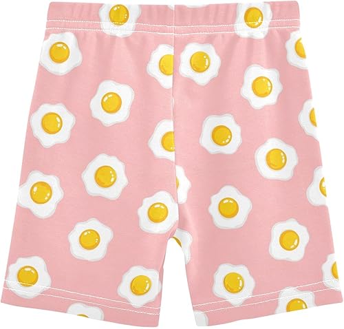 Fries Egg Pink Girls Bike Shorts Toddler Soft Cotton Active Biker Shorts(Multi-fries Egg Pink,10 Years)