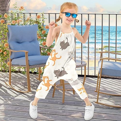 Funny Cats Toddler Girl Clothes Sleeveless Romper Jumpsuit for Girls Summer One Piece Romper Pants Size 1-6T(Multicolor,2T)