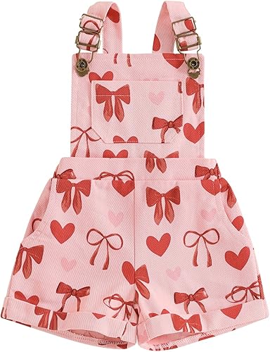Occasions: This Bow print overall shorts great for baby girls valentines day outfit, toddler girl valentines day outfit, little girls valentines day outfit, valentines day outfit kids girl, also perfect for toddler baby girl spring clothes, toddler baby girls spring outfits, casual daily wear, party, christmas, birthday gifts, holiday, vacations, photography, or any other occasions