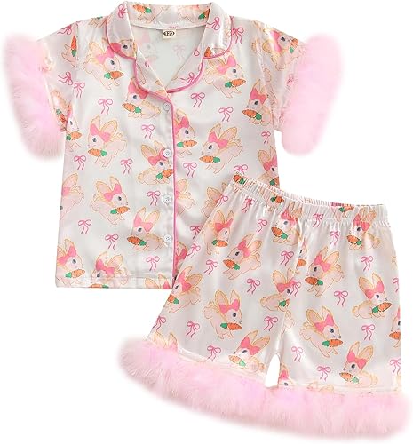 Size:Baby feather trim pajamas,kids lounge set short sleeve button up shirt and satin pj shorts is suitable for silk pajamas 6-12months,12 month summer pajamas,pajamas 18-24 months,2t silk pajamas girls,3t silk pajamas girls,toddler silk pjs 4-5T,6T pajamas girls,little kids pjs 7-8 years,kids girls silk pjs 8-9 years, kids pajamas 9-10 years.girl button down pajamas,girls satin pajamas sets short,kids silk pajamas girls,summer baby pajamas,silk pajamas for girls,two piece toddler pajamas