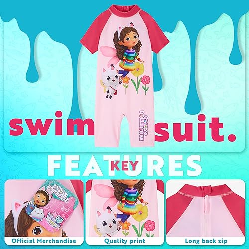 Gabby's Dollhouse - Your Gabby fan can make a splash this summer with this full swimming costume for girls. These comfortable and stylish girls' one-piece swimsuits are perfect for showing off their love for the popular series on days out at the beach or pool