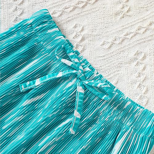 Generic Toddler Girls Blue Casual Pants Printed Bowknot Waistline Loose Pants Stretchy Wide-Leg Pants for (Blue, 3-4 Years)