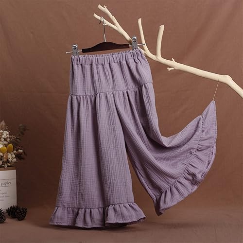 Generic Toddler Girls Stretchy Wide-Leg Pants Summer Cotton Elastic Waistband Casual Pants Kids Girls Solid (Purple, 2-3 Years)