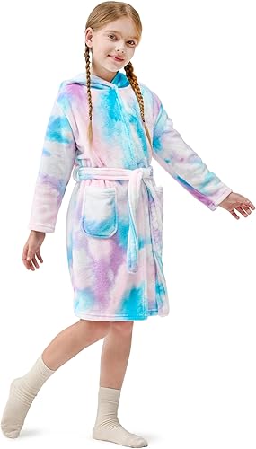 High-quality material: Bathrobes for Girls is made of high-quality plush flannel fabric, the soft, skin-friendly and breathable touch makes your skin feel delicate and smooth, while also being warm and anti-static; girls bathrobe is also lightweight and durable, suitable for use outside or at home.