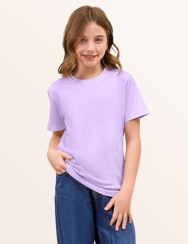 Tagless Comfort Design:Classic Crew Neck Girls Summer Tops No Scratchy Tags Seamless Stitching Prevents Chafing Loose Fit Allows Free Movement Ideal for Active Kids