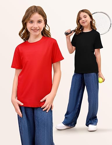 Premium Cotton Fabric:Ultra Soft Breathable Girls T-Shirts Short Sleeve Tees Gentle on Skin with Sweat-Wicking Technology Keep Cool All Day Long Hypoallergenic for Sensitive Skin